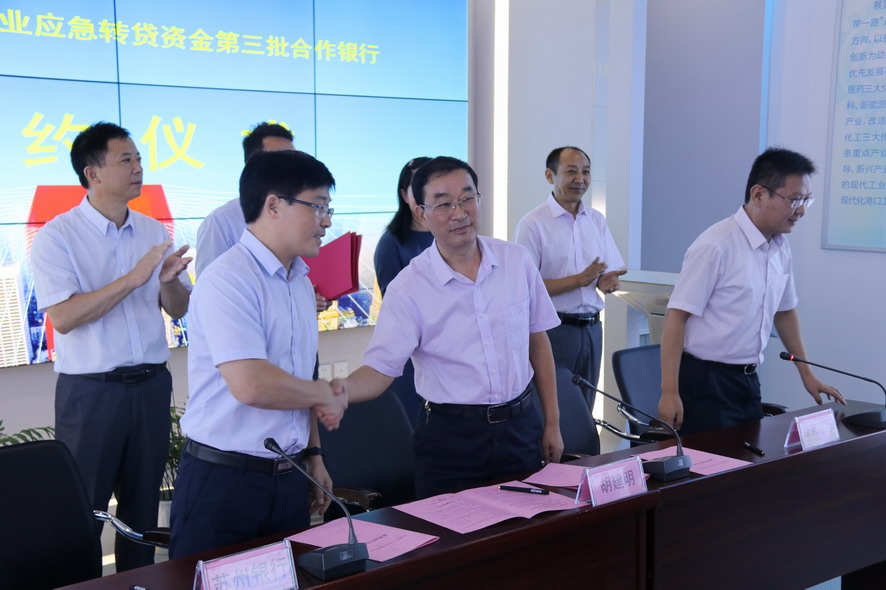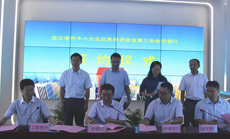 8月26日上午,市政府在市中小企業(yè)服務中心舉辦連云港市中小企業(yè)應急轉貸資金簽約儀式發(fā)布會,集團公司總經(jīng)理胡建明出席會議,并與相關銀行簽約。