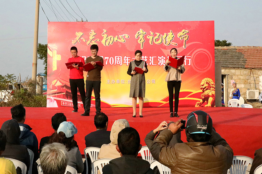 11月3日下午,伴著金秋明媚的陽光,臺北投資公司文藝小分隊來到了海州灣公司海濱八組,一起為生產一線職工送上了一場“不忘初心 牢記使命”文藝演出。