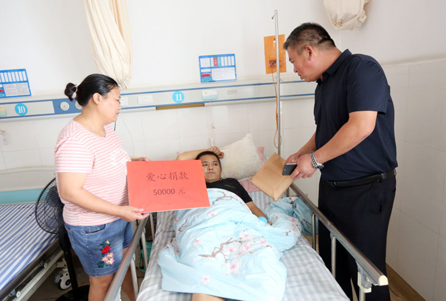 8月16日上午,徐圩投資公司總經理莊清付一行到市第二人民醫(yī)院看望正在住院治療的職工張聯君,并將5萬元職工愛心捐款交到他妻子朱敏的手中,讓他和家人感動萬分。