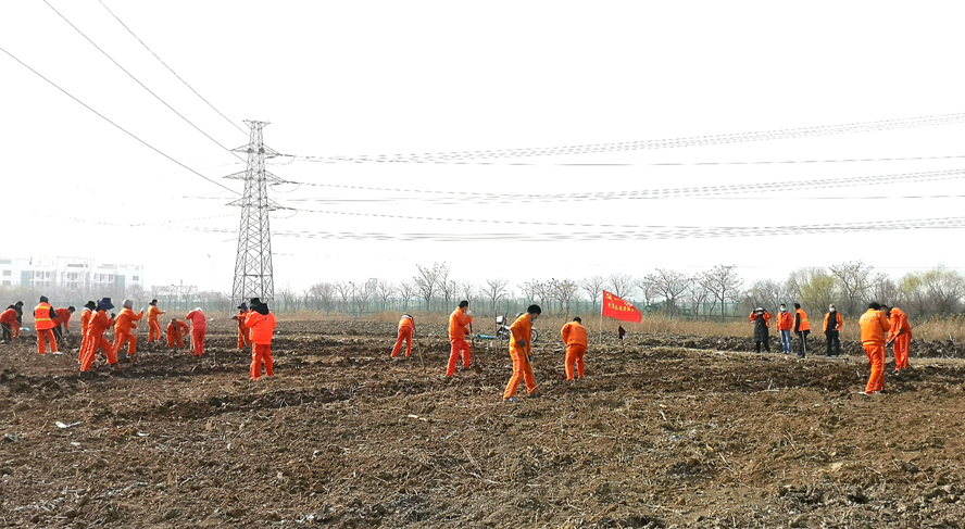 為保證植樹質(zhì)量,該公司配備多名專業(yè)技術(shù)人員進(jìn)行全程技術(shù)指導(dǎo)。上午8時許,在移苗現(xiàn)場,一臺挖掘機轟隆隆地作業(yè)著,小心翼翼的將一棵棵大樹苗連根拔起,在保證不擠壓的情況下,輕抬輕放,裝苗運輸。在栽苗活動現(xiàn)場,全體工作人員戴好頭罩、手套等防護(hù)用具,在統(tǒng)一指揮下,彼此間隔1米左右,擼起袖子、揮著鐵鍬、扛著鋤頭飛快地投入到栽苗植樹作業(yè)中。大家分工協(xié)作,有的開槽挖坑;有的栽植樹苗;有的抬木扶苗;有的回填新土;有的纏繩護(hù)樹;有的澆水保濕……到處都是忙碌的身影,整個植樹活動現(xiàn)場一片熱火朝天的繁忙景象。放眼望去,在明媚的春光中,一排排新栽下的樹苗迎風(fēng)挺立,生機勃勃,組成了一道道靚麗的風(fēng)景線。