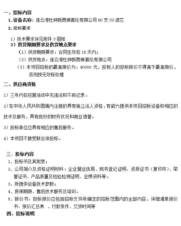 CG過濾器招標公告
