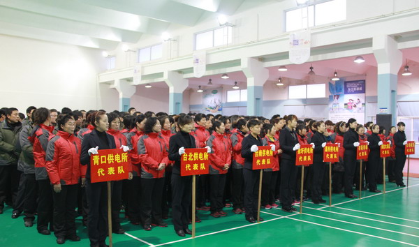 上午8時,開幕式準(zhǔn)時開始。青口供電所代表隊、臺北供電所代表隊、臺南供電所代表隊、徐圩供電所代表隊、灌西供電所代表隊、農(nóng)場市場代表隊、淮鹽大酒店代表隊和公司機關(guān)代表隊等依次入場。他們振奮高昂,邁著鏗鏘的步伐整齊劃一地走向主席臺,彰顯了電人團結(jié)協(xié)作、勇于拼搏、開拓創(chuàng)新、積極進取的精神