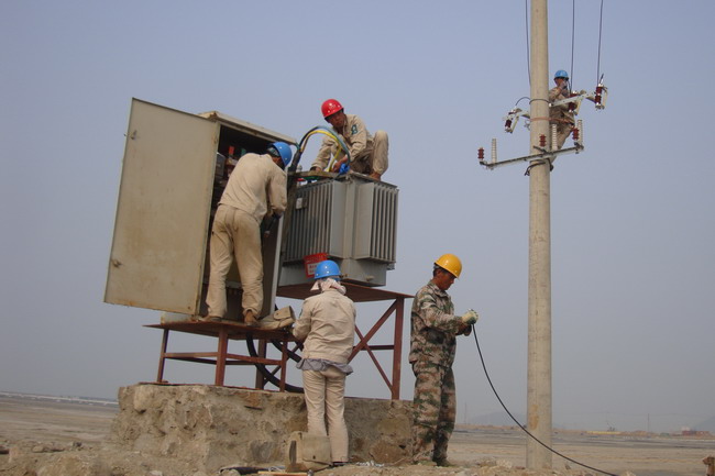 金海一期二次B3區(qū)加固地基工程要求在5月10前具備全面抽真空條件。臺北供電所承擔(dān)此項(xiàng)電力工程,需架設(shè)10千伏線路2280米,安裝19臺變壓器及配電箱,工程總量170萬元。為使工程按時(shí)完成,維護(hù)供電所的信譽(yù),展示自己的實(shí)力,該所細(xì)心謀劃,調(diào)配車輛,拉材備料,認(rèn)真組織人力抓緊施工。現(xiàn)場施工條件惡劣,亂石堆放,腳下無路,給施工作業(yè)帶來重重困難。職工作業(yè)汗流浹背,吃苦耐勞,無怨無悔。憑著頑強(qiáng)的斗志,認(rèn)真地堅(jiān)守的崗位,聚精會神地操作,為連云新城“一年拉框架,兩年出形象,三年基本建成”的戰(zhàn)略建設(shè),奉獻(xiàn)自己的力量。