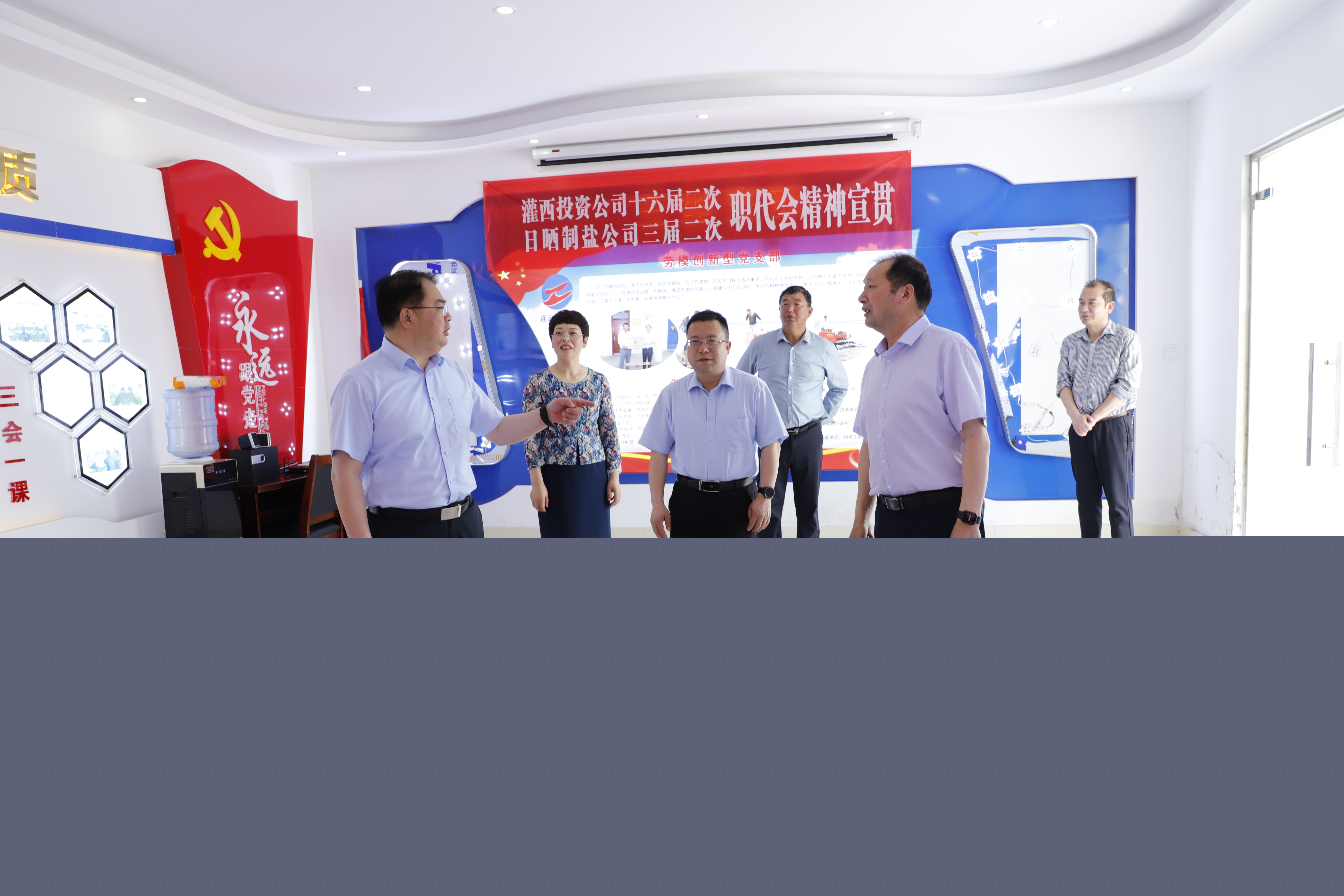 戴鴻鳴書記一行分別到日曬制鹽新河分公司八班的扒鹽現(xiàn)場、零班的班組活動室、新河分公司黨建活動室和安樹林勞模創(chuàng)新工作室實地調研,對黨建陣地建設提出指導意見,他指出,基層一線的陣地建設是企業(yè)文化建設的重要組成部分,是公司的形象窗口,陣地建設要因地制宜,打造特色,要進一步完善設計方案,盡快把活動室高標準高質量建起來。