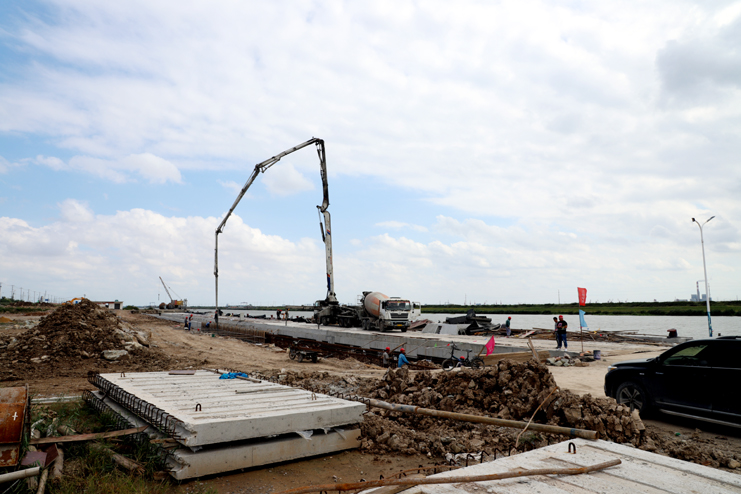 “十一”國慶節(jié)長假成為大部分人難得的休閑時光,但在灌西五灌河碼頭二期工程項目的施工現(xiàn)場,生產(chǎn)作業(yè)仍在熱火朝天地進行著,建設者們放棄休息,奮戰(zhàn)在施工生產(chǎn)一線,搶抓工期,全力推進二期碼頭項目建設進度。