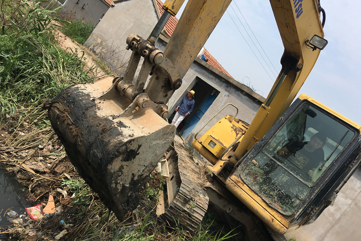 "各項防汛工作中,當數(shù)中二圩排水道堵塞問題最為突出,由于之前的燕尾港鎮(zhèn)拆遷,大量拆遷戶涌入灌西鹽場中二圩地區(qū)生活,違建現(xiàn)象嚴重,各種建筑垃圾和白色垃圾隨處堆放,排水系統(tǒng)深受其害。為方便職工群眾生活起居,灌西公司對中二圩地區(qū)排水道進行疏通清理,以便安度汛期。”清理現(xiàn)場,," 防汛辦公室主任楊善兵說道,只見大小挖機全力施工,對于大挖機不好進入的居民區(qū)內部小溝小道則由小挖機專門清理,對于復雜地形機械難以進入的地方只能人工清理,務求做到全面徹底,不留死角。