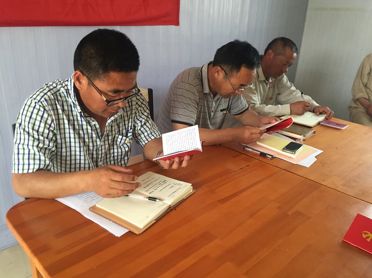 會(huì)議最后新河支部全體黨員重溫入黨誓詞。新河黨支部全體黨員起立。由支部書(shū)記李加新同志帶領(lǐng)大家宣讀誓詞。(新河支部程龍)