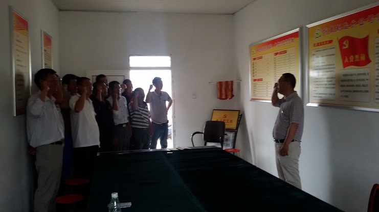 6月22日上午9時(shí),埒南制鹽分公司會(huì)議室,氣氛莊重活潑,每位黨員都佩戴上精致的黨徽,面對鮮艷的黨旗,莊嚴(yán)的舉起右手,重溫入黨誓言。在莊嚴(yán)的宣誓聲中,埒南黨支部“慶七一”給黨員過政治生日活動(dòng)正式拉開序幕,本次黨日活動(dòng)共有三項(xiàng)議程,一是重溫入黨誓言、二是給黨員發(fā)放政治生日禮品,三是開展“兩學(xué)一做”專題教育。