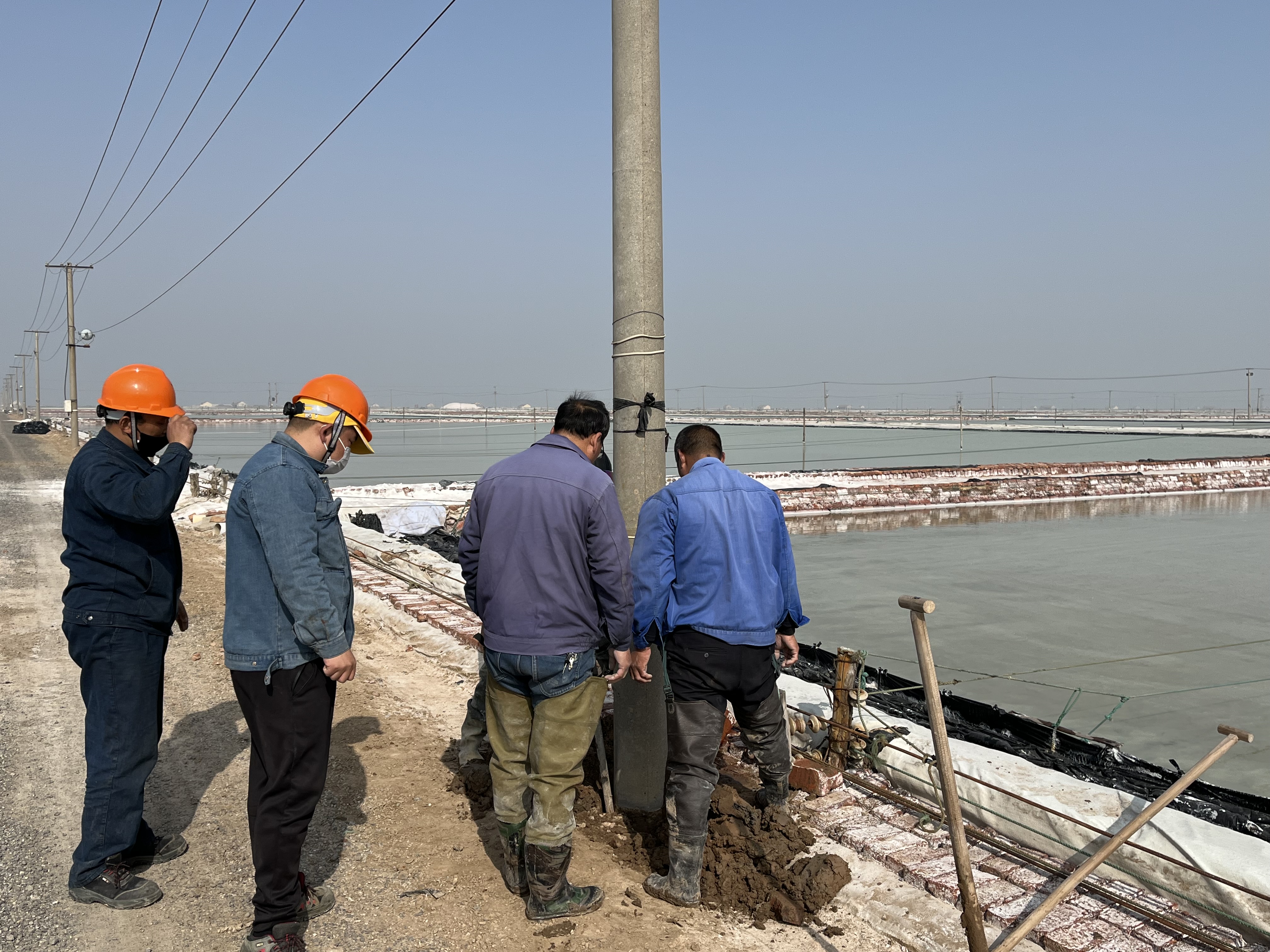 經(jīng)過多年的風(fēng)吹雨打,新河制鹽公司四班大池道邊上的電線杠出現(xiàn)大面積傾斜現(xiàn)象,嚴重影響安全生產(chǎn)。9日上午,公司安全負責(zé)人趙斯忠,組織部分后勤及班組人員一起為整改工作出點子,解決本次隱患整改的難點。