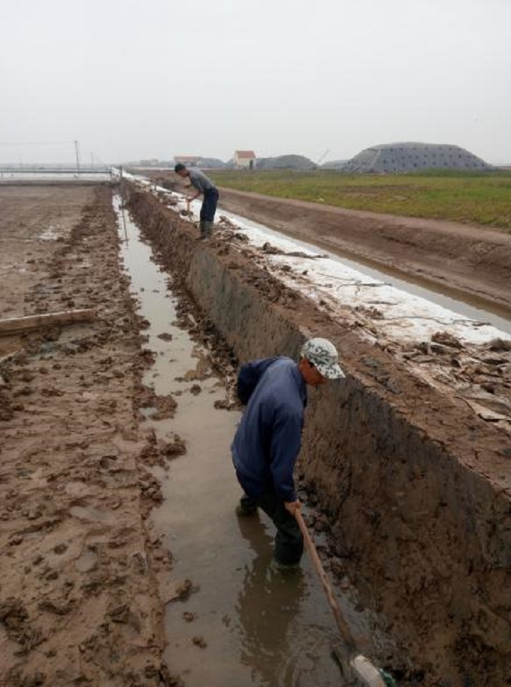 根據(jù)公司生產(chǎn)部門統(tǒng)一要求,在每個(gè)生產(chǎn)班組新灌一塊結(jié)晶池,埒南制鹽分公司精心布署,細(xì)化安排,嚴(yán)控時(shí)間節(jié)點(diǎn),抓頭、抓早、抓緊,對(duì)生產(chǎn)班組新上的格塊堅(jiān)持做到現(xiàn)場(chǎng)指導(dǎo),跟蹤督察,不符合灌池質(zhì)量標(biāo)準(zhǔn)的堅(jiān)決不準(zhǔn)上馬。(圖為職工在修整結(jié)晶池堰)莊忠明