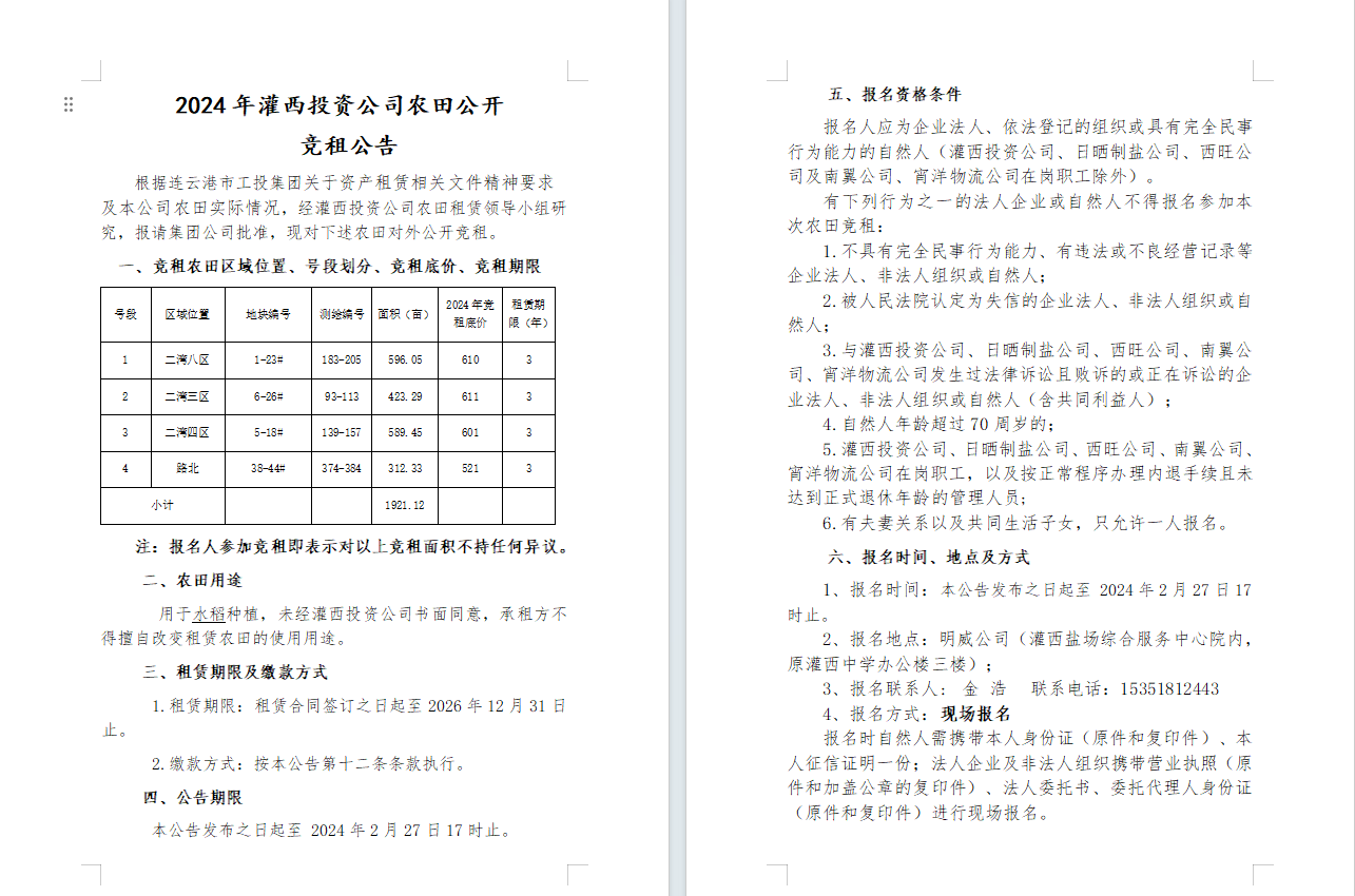 2024年灌西投資公司農(nóng)田公開(kāi) 競(jìng)租公告