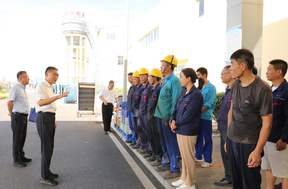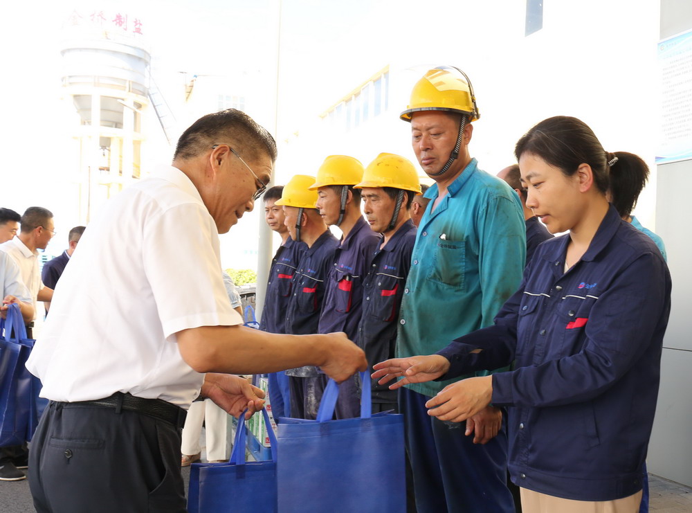 7月8日,集團(tuán)公司副總經(jīng)理劉承志來(lái)金橋制鹽公司“送清涼”,走訪慰問(wèn)堅(jiān)守在高溫崗位的一線職工。