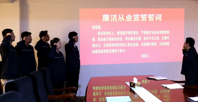 會議傳達了集團紀委《關于扎實開展年輕干部“廉政教育月”活動的通知》文件精神,簽訂了《廉潔承諾書》、發(fā)放了《家庭助廉倡議書》和進行廉潔從業(yè)宣誓。