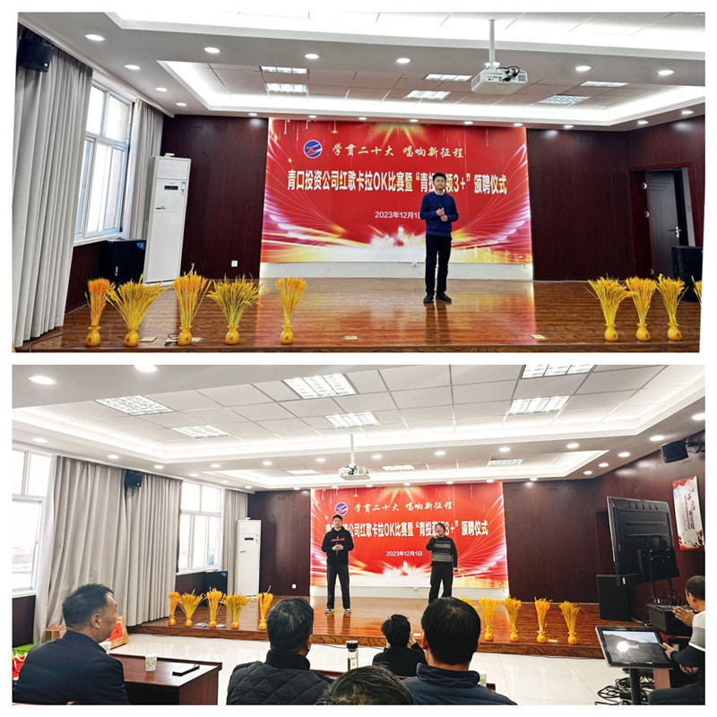 “再唱山歌給黨聽,我把歌兒獻給你,五十六個名族再唱山歌喲,山歌給黨聽。”在“學貫二十大 唱響新征程”青口投資公司紅歌卡拉OK比賽暨“青投藍領3+”頒聘儀式中,一首《再唱山歌給黨聽》為青口投資公司第四屆豐收節(jié)畫上圓滿句號。