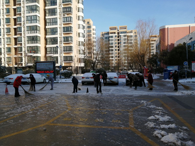作為公司職工居住的鹽場家園小區(qū),按照金海社區(qū)要求,執(zhí)行封閉管理,每戶只發(fā)一個通行證,除門衛(wèi)外,管理人員全部參與輪流值班。特殊天氣時,大門的看守更加嚴(yán)格與認(rèn)真,值班人員對過往的人員登記、量體溫,確保沒有問題后才給與放行。大雪洋洋灑灑,清晨的鹽場家園銀裝素裹,泰祥物業(yè)的工作人員,佩戴好口罩,拿著掃帚彎著腰,揮動手中的工具在清理積雪。雪已結(jié)成冰,但他們不畏寒冷,堅(jiān)毅有力,鏟掉冰凍。寒冷的天氣,絲毫沒有影響大家的熱情,先主路后支路,逐漸掃出一條整潔的路面,疫情面前,泰祥物業(yè)人用行動用嚴(yán)格用責(zé)任溫暖了業(yè)主的心。