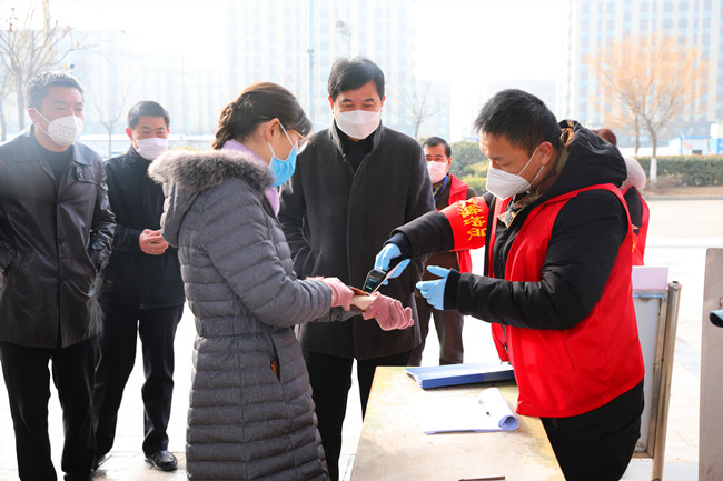汪書記一行在公司疫情防控檢查站前,詳細了解了公司疫情防控情況,青農(nóng)一路作為主要的進場通道,四個單位的黨員干部輪流值班,并設置臨時看護房,保證二十四小時值班。在鹽場家園小區(qū)僅保留一個出口,外來家用轎車一律禁止入內(nèi),每戶發(fā)一張通行證,嚴格管控人員流動。汪書記得知物業(yè)公司還沒有完成,鼓勵大家非常時期用非常辦法,將工作做細做實,想居民所想,嚴格做好防控工作。進入小區(qū)前,汪書記也與居民一樣配合登記和測量體溫,當看物業(yè)為了保證每天定時對單元和電梯間等重要場所的消毒存有大量消毒液,強調(diào)物業(yè)公司要增強消毒物品存放安全意識,合理使用,盡最大努力保一方平安。 (顧 益)