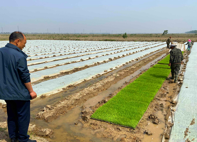當(dāng)前水稻生產(chǎn)已全面進(jìn)入揭膜管理期,大新農(nóng)場(chǎng)把保苗護(hù)苗作為促進(jìn)穩(wěn)產(chǎn)增收的一件大事來抓,結(jié)合開展創(chuàng)先爭優(yōu)活動(dòng),管理人員進(jìn)入生產(chǎn)一線,督促條田管理工提前做好秧苗管理工作,為下一步插秧序時(shí)推進(jìn)打下堅(jiān)實(shí)基礎(chǔ)。(王 璐)