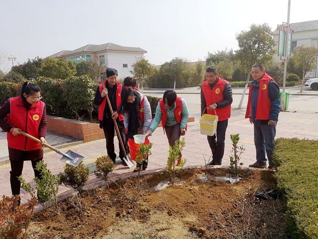 會后,服務(wù)中心與社區(qū)一行人身穿紅馬甲迅速投入到緊張的植樹活動中,大家三五人一組,分工協(xié)作、配合默契,扶起樹苗、揮鍬鏟土、培實新土,齊心協(xié)力種下一株株樹苗,呈現(xiàn)出一派火熱的勞動場景。