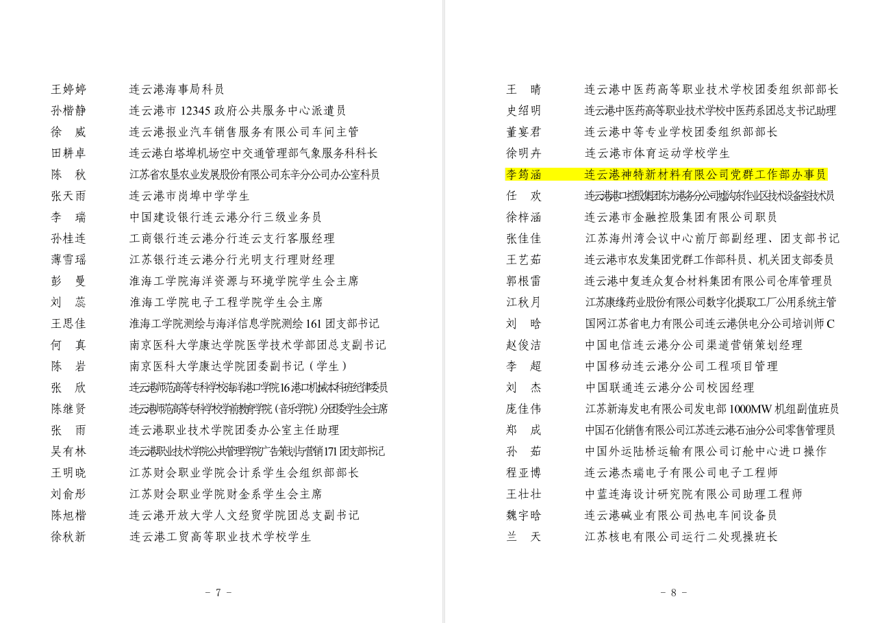 近日,共青團(tuán)連云港市委員會(huì)公布了2018年度“連云港市優(yōu)秀共青團(tuán)員”“連云港市優(yōu)秀團(tuán)干部”“連云港市五四紅旗團(tuán)委”“連云港市五四紅旗團(tuán)支部”(總支)名單,我公司員工李筠涵榜上有名,被授予“連云港市優(yōu)秀共青團(tuán)員”稱號(hào)。