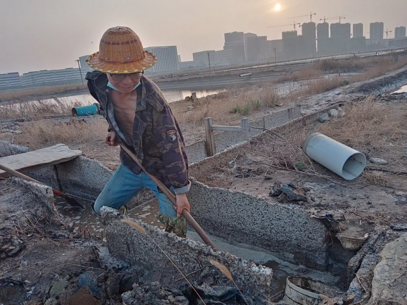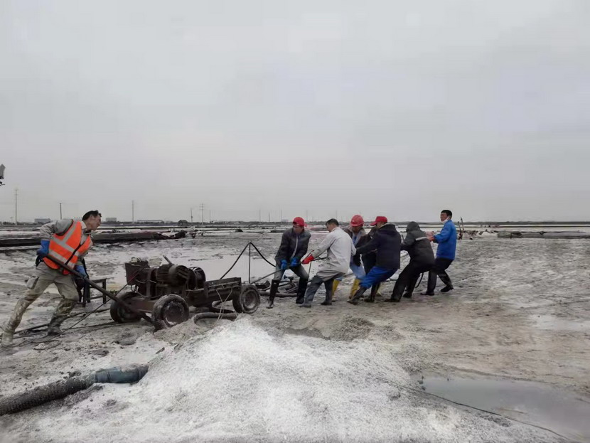 在海州灣大浦班組367畝的礦鹽生產(chǎn)灘地上,遠(yuǎn)遠(yuǎn)的看去,只有三個人在灘地上忙碌,分別是班長孫和華和兩名鹽工。在十月份的時候,原大浦班組班長夏軍帶領(lǐng)第一批鹽工前往海福特,孫和華因為身體原因選擇了留下,此時,生產(chǎn)班組人數(shù)減半,只剩下三人。新產(chǎn)業(yè)要開發(fā),礦鹽復(fù)產(chǎn)也要攻堅,當(dāng)公司征求部分職工意見,誰愿意來做大浦班組的班長,維持礦鹽正常生產(chǎn)。大家心里都明白,這不是一份榮譽(yù),而是一份責(zé)任,是千斤重?fù)?dān),一片生產(chǎn)灘地只有三人,這是一個燙手山芋的活。這時,孫和華站了出來,他說:“我是一名老黨員了,黨員就是要平時看出來、困難站出來、危急豁出來,為其他同志樹立黨員先鋒模范作用,這份擔(dān)子,理應(yīng)我來挑!”