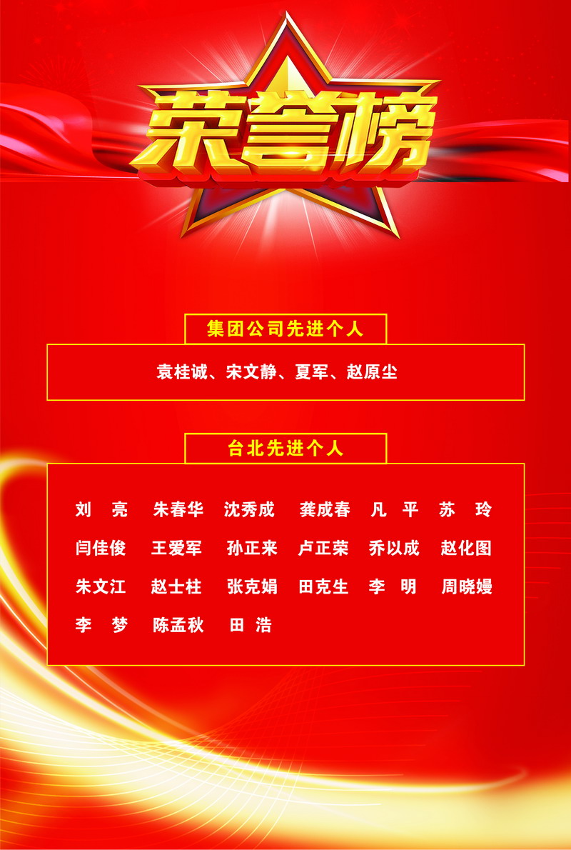 先進個人:劉亮、朱春華、沈秀成、龔成春、凡平、蘇玲、閆佳俊、王愛軍、孫正來、盧正榮、喬以成、趙化圖、朱文江、趙士柱、張克娟、田克生、李明、周曉嫚、李夢、陳孟秋、田浩.