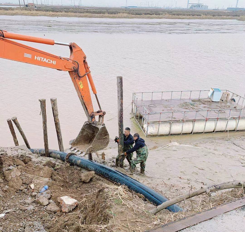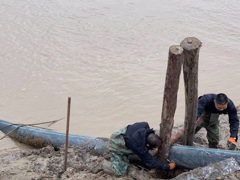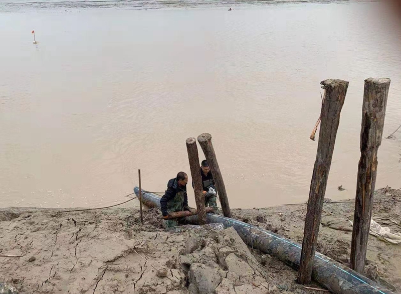 ?一想到昨天管道巡查到這里的情形,現在還讓人“心有余悸”!因管道地處善后河彎道處,常年的泄洪沖刮將河邊覆蓋管道的泥土沖刷卷走,使得岸邊泥土下原本穿越的PE315管道已經暴露出來,退潮時的旋流不斷地沖撞著漂浮起來的鈣液管道,劇烈抖動著的管道不時發(fā)出“噗噗的低吼”隨時可能折斷。埒子口潮河段是鈣液東輸灌西管道最長的一節(jié)過河穿越,全長約300米。穿越管道如果折斷在河底后果將不可想象、經濟損失也是不可估量的,這一幕讓在場所有人員都為之捏了一把汗!