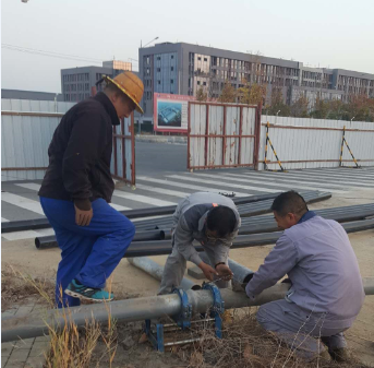 鏡頭二:負(fù)責(zé)匯晶路新建橋梁鈣液管道遷建工程的供鹵組聯(lián)合復(fù)曬灘人員早早投入到施工操作中,該項(xiàng)工程是為了配合開發(fā)區(qū)匯晶路與躍湖路新建連通橋梁的需要,需要遷改鈣液管道160米,工程造價(jià)6萬元。