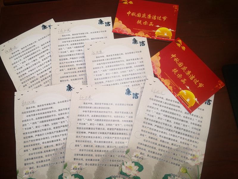 中秋、國慶將至,為更嚴(yán)更細(xì)落實(shí)中央八項(xiàng)規(guī)定精神,防止“四風(fēng)”反彈回潮,臺(tái)北投資公司紀(jì)委緊盯關(guān)鍵節(jié)點(diǎn),及時(shí)開展節(jié)前廉潔提醒工作,向單位主要負(fù)責(zé)人、重點(diǎn)崗位人員贈(zèng)送廉潔過節(jié)提示函,著力營造風(fēng)清氣正、歡樂祥和的節(jié)日氛圍。(孫小玲)