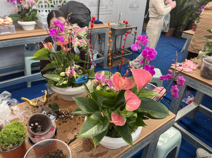 ? ? 我們的華茂花卉城精心為每個(gè)人準(zhǔn)備了插花素材,我們都折騰的不亦樂乎,大家又是墊土又是把花扶正又是擺造型又是壓實(shí)土,每一次都樂在其中,巧手創(chuàng)造出的一半是生活,一半是浪漫。雖然說(shuō)沒有專業(yè)插花師插的那么好,但看到有生命力的插花,美極了,心情也會(huì)一下子舒暢!