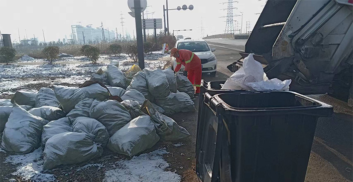 早上六點,在徐圩新區(qū)垃圾轉(zhuǎn)運站,環(huán)衛(wèi)分公司垃圾清運班組班長羅海軍正在等著垃圾收運中轉(zhuǎn)車的到來。他說:“知道昨晚下雪了,今天我們提前一小時就上崗了,以防因為道路濕滑影響收運效率?!?據(jù)統(tǒng)計,在持續(xù)低溫時段,他們每天清運生活垃圾高達15噸,清理轉(zhuǎn)運各類果皮箱垃圾達200余個及19家企業(yè)(單位)的垃圾桶,并同步負責裝運由道路保潔工人撿拾定點擺放在路邊的近500包袋裝垃圾。(何春林)