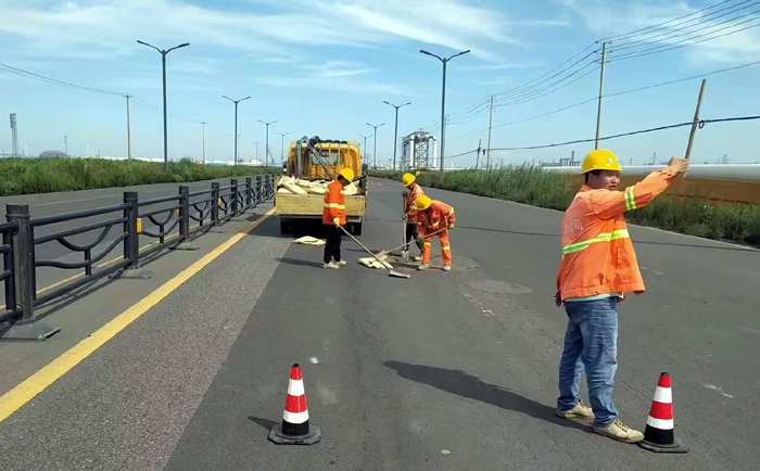 連日來(lái),市政分公司組織人員深入一線,加班加點(diǎn)對(duì)賽事路線內(nèi)的市政設(shè)施情況進(jìn)行全面摸底排查,對(duì)巡查發(fā)現(xiàn)的市政道路病害,有針對(duì)性地制定設(shè)施維修方案,精準(zhǔn)定向整治。 截止日前,該公司全體人員加班加點(diǎn)奮戰(zhàn)在一線,有序推進(jìn)各項(xiàng)維修工作進(jìn)程。當(dāng)前,已完成海濱大道、港前大道等多條瀝青路面維修186平方米、道路隔離欄更換維修86米;石化七道、石化三路等路段完成142平方米人行道磚鋪設(shè)、28米路緣石和73個(gè)擋車(chē)石維修工作;在疏港大道與海濱大道交叉口道邊加裝波形護(hù)欄220米;疏港大道、石化七道、石化三路更換維修雨排水管道168米;更換港前大道、石化區(qū)域內(nèi)鑄鐵檢查井蓋19個(gè)。